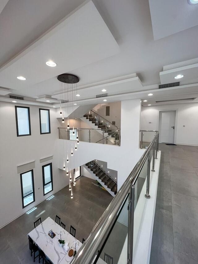 الدور الارضي ٣ غرف نوم وحده منهم ماستر صاله مفتوحه السقف High Ceiling فيها طاوله طعام 14 شخص صاله داخليه لها اطلالة بانورامية على البحر وحمام السياحه ديوانيه خارجيه لها اطلالة بانورامية على البحر